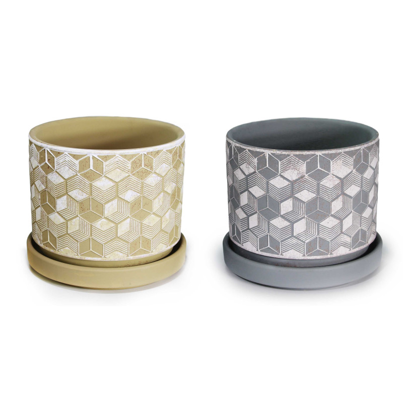 Γλάστρα κεραμική με πιάτο σχέδιο ρόμβος σετ 3 τμχ