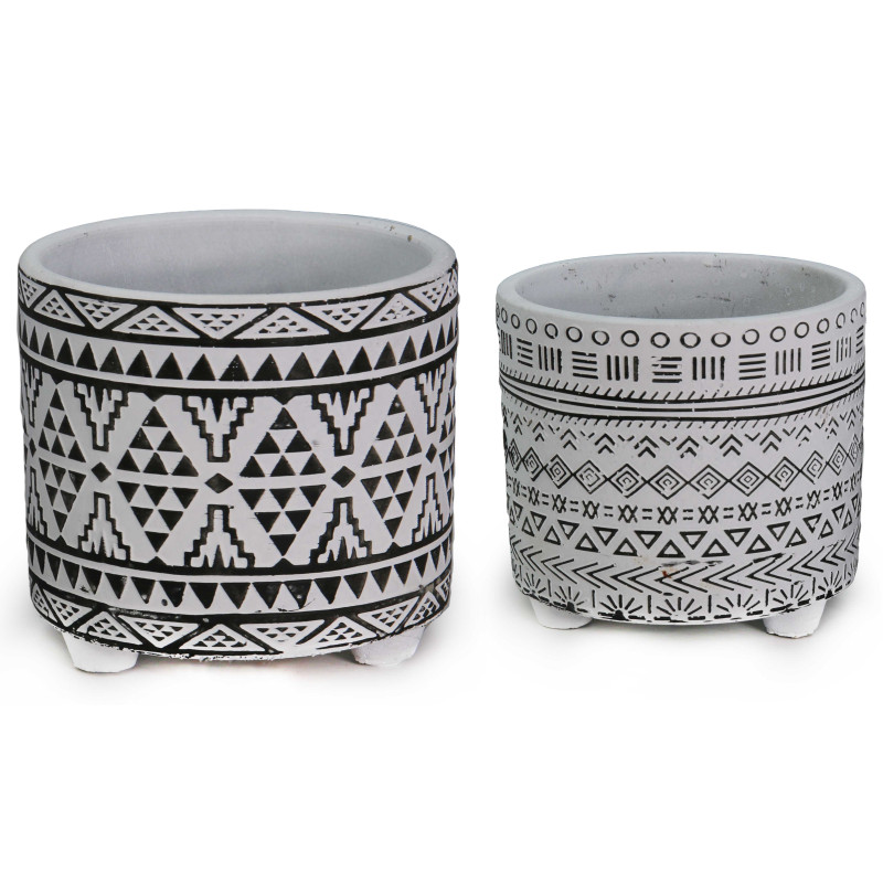 Γλάστρα κεραμική σχέδιο ethnic bw