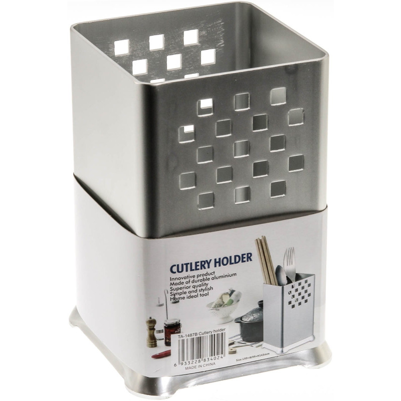 Η κουταλοθήκη όρθια τετράγωνη αλουμινίου είναι μια κομψή και πρακτική λύση για την αποθήκευση και οργάνωση των κουταλιών, πιρουνιών, μαχαιριών και άλλων μαγειρικών εργαλείων στην κουζίνα.