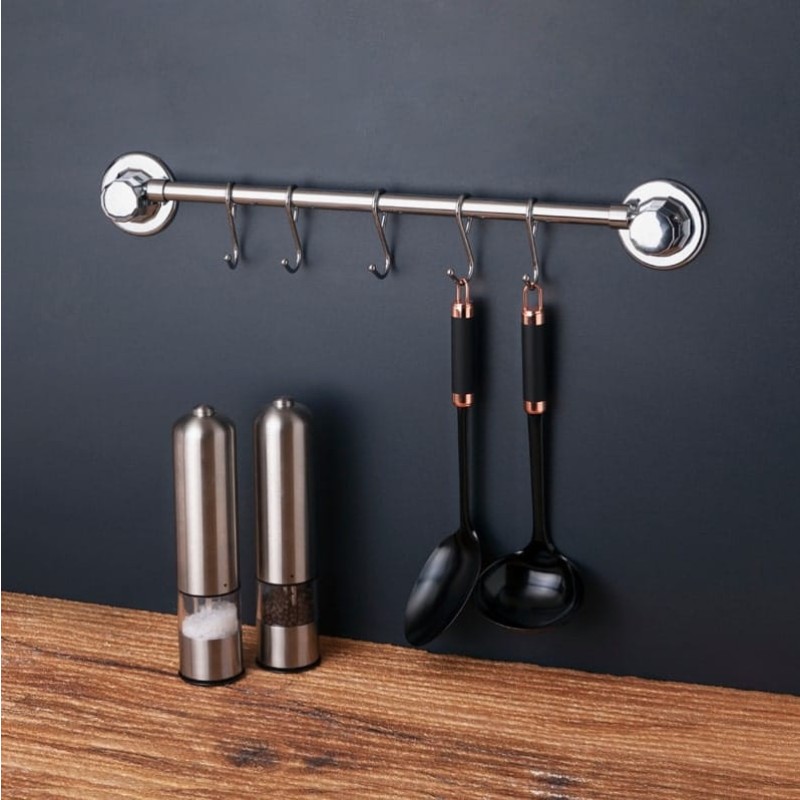 Η κρεμάστρα κουζίνας με βεντούζα είναι ένα πρακτικό και ευέλικτο αξεσουάρ για την οργάνωση του χώρου στην κουζίνα, που χρησιμοποιεί τη δύναμη της βεντούζας για να προσκολληθεί σε λείες επιφάνειες χωρίς να απαιτεί τρύπημα ή βίδες.