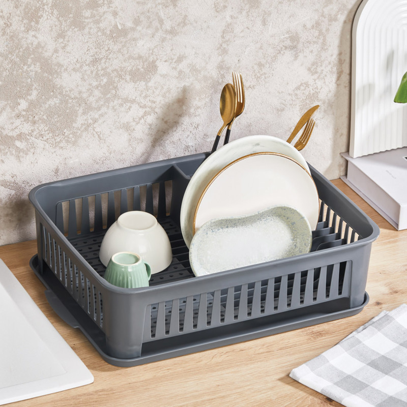 Το βαθύ σχέδιο της πιατοθήκης επιτρέπει να χωρέσετε περισσότερα αντικείμενα, ενώ ο ενσωματωμένος δίσκος συλλογής νερού αποτρέπει τη διαρροή νερού και προστατεύει την επιφάνεια του πάγκου από την υγρασία.